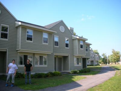 Wir wohnen in den "Townhouses", die zu den Geräumigsten und Schönsten gehören und wo es klarerweise voll abgeht. Passend zu uns! Wir haben eine eigene Küche (müssen sie nicht mit 50 anderen teilen - hihi), eigenes BAD/WC und Wohnzimmer. Anbei seht ihr noch Fotos von unseren Vorlesungsgebäuden, Fitnessstudio und vom beeindruckendem Ice-Hockeystadium